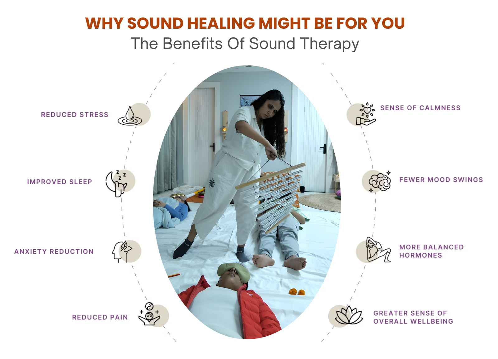 Sound Healing uses soothing vibrations and frequencies to relax the mind and restore inner balance.